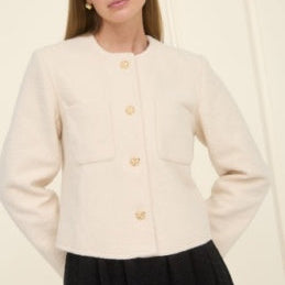 Ivory collarless button down jacket