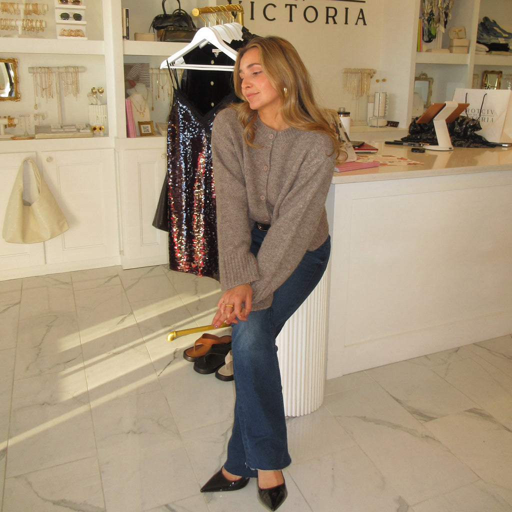 Mocha/ Button Front/ Long sleeve/ Cardigan