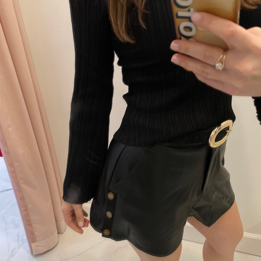 Black pleated button detail PU shorts
