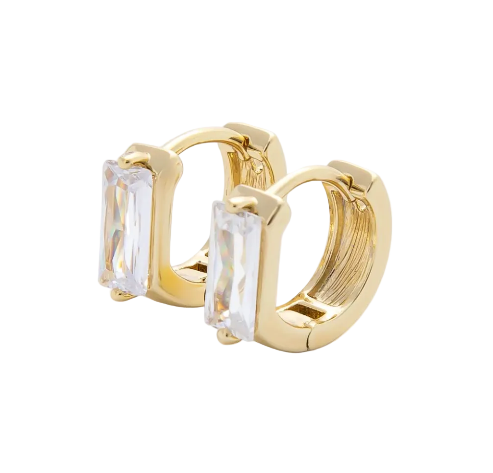 Baguette CZ huggie hoops with just the right amount of sparkle—effortless, polished, and made for everyday shine.