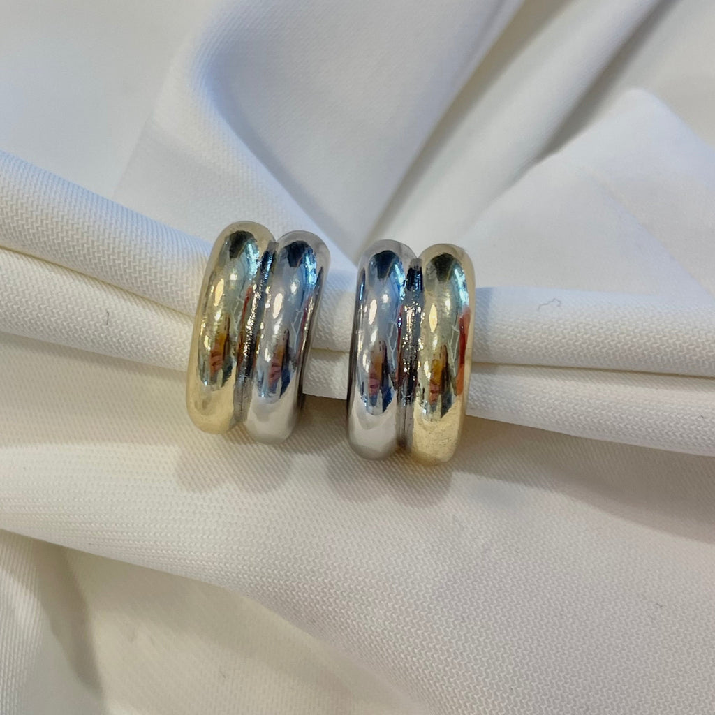 Mixed metal double hoops! The perfect addition to our two tone girls ear stack! Easy for everyday wear, or wear it in your second hole with a chunky hoop to elevate your look