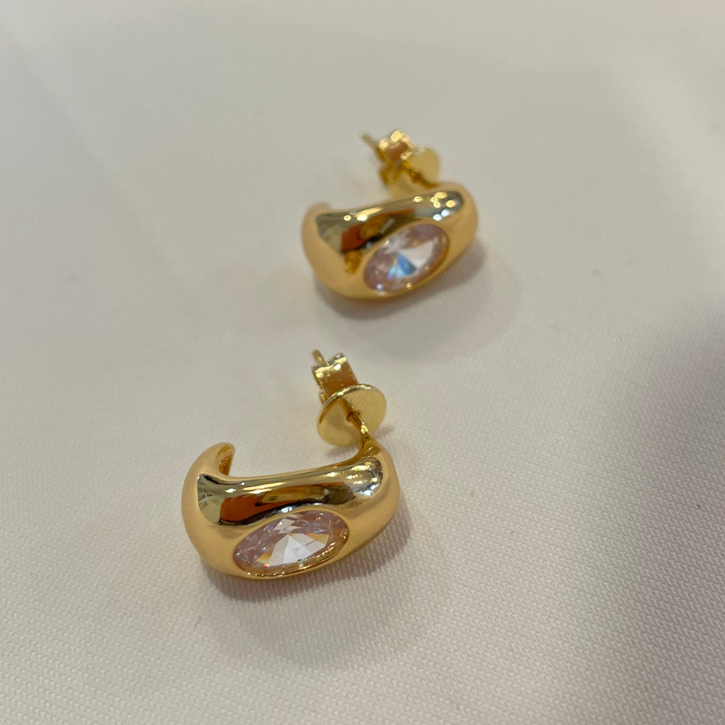 Tear drop shaped studs with oval CZ stone in face! A perfect everyday stud that will dress up any look. Lightweight and easy to wear, style them so many different ways!