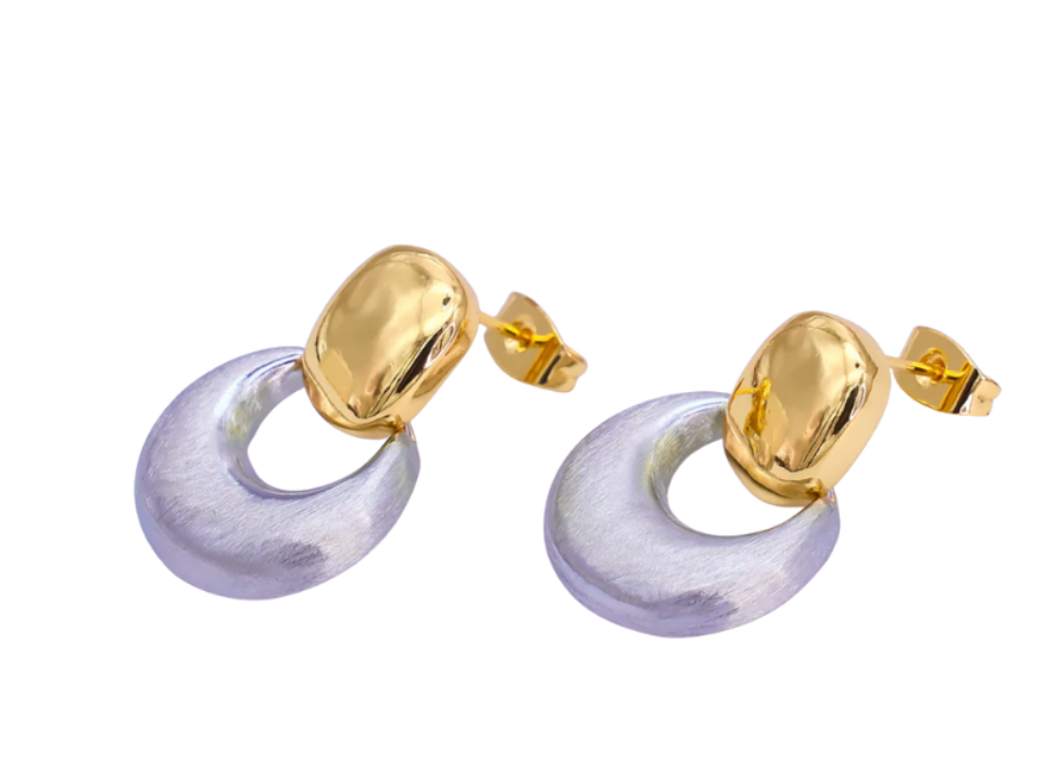 The Tessa features a sleek drop design with a balance between warm gold and cool silver for a versatile, statement making finish.