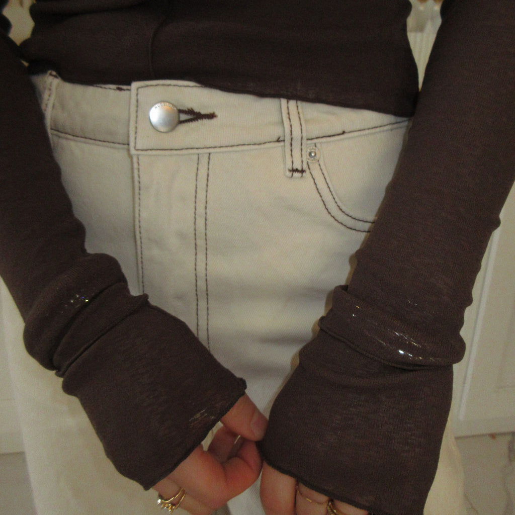 The Emmy Top is made from a stretch jersey with a dry hand feel. The silhouette is a form fitting long sleeve top with length finishing at the hip. Features include a raised neckline, long fitted sleeves, and baby locked neckline, seams and hems.