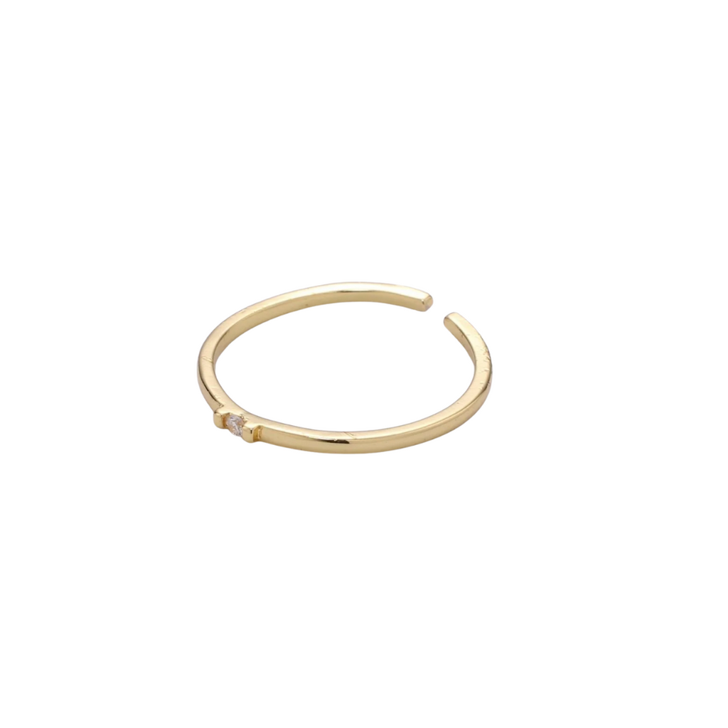 Pompei is delicate and timeless with a gold band and a single CZ in the center.