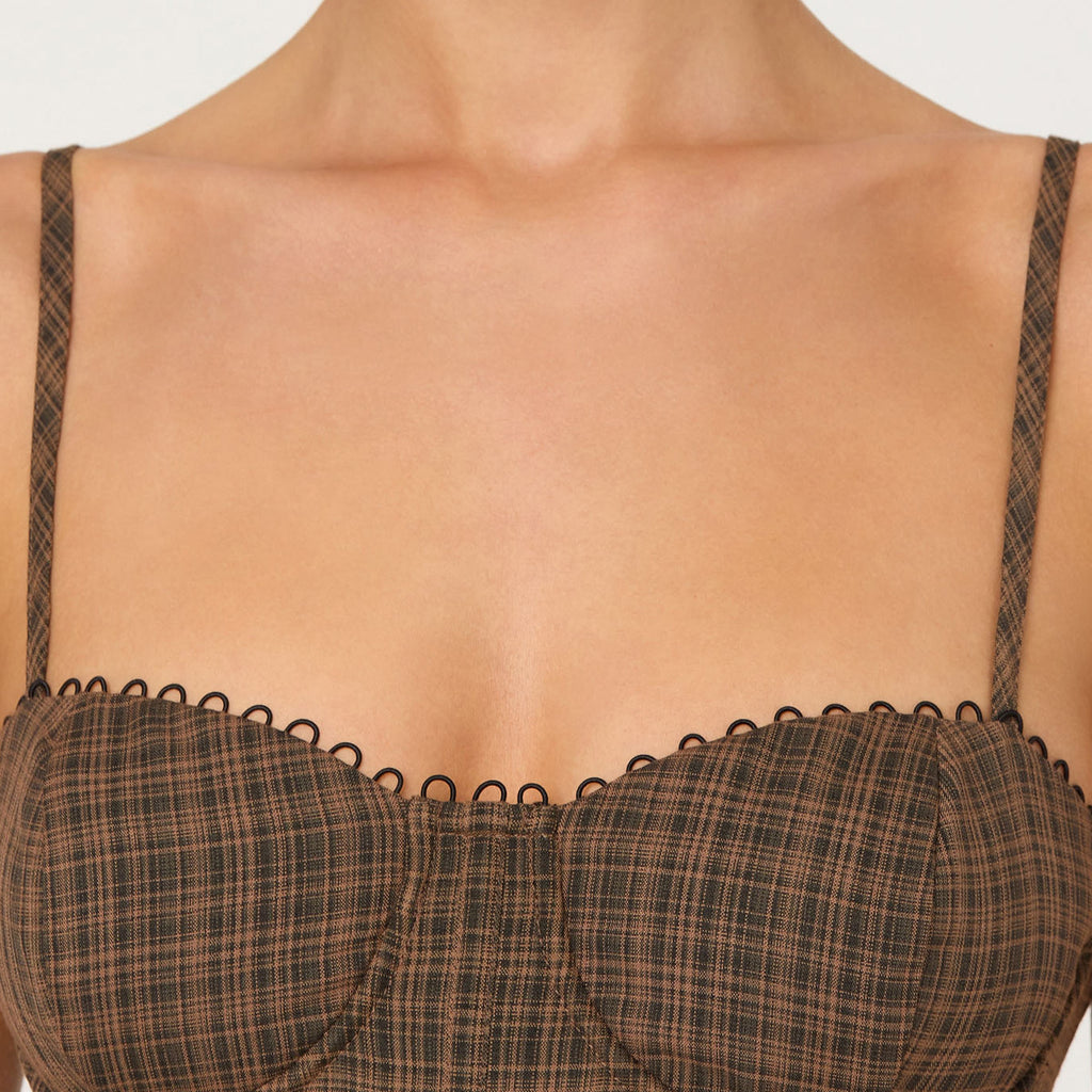 - Plaid peplum bustier top