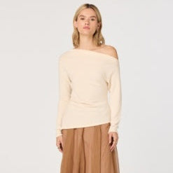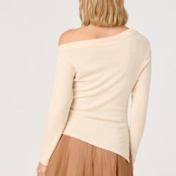 Cream long sleeve/ asymmetrical cut top