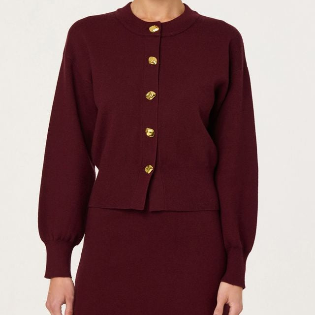 This knit cardigan balances polish and play, perfect for brunch, workdays, or styled with its matching mini skirt for a refined look.