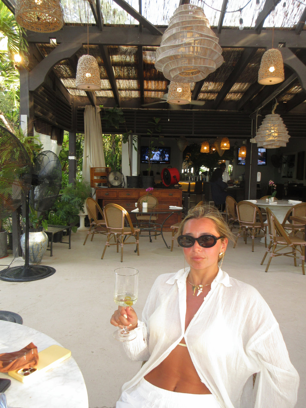 I am wearing the one size button down and M shorts. I would normally wear the small.